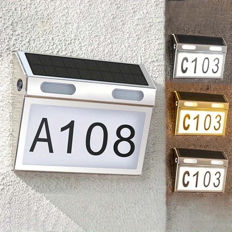 LED Solar Address Sign House Number Illuminated Solar Address Plaque Street Outside Garden Driveway Solar Door Number with Light