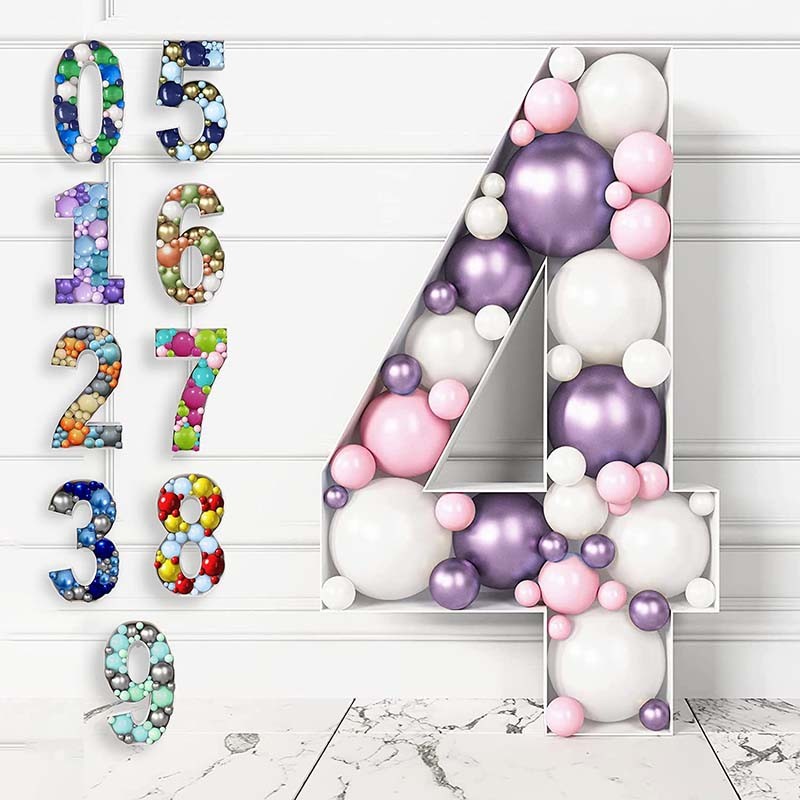 73/100/120CM Number 0 To 9 Letter Balloon Marquee Filling Box Stand DIY Baby Birthday Organic Mosaic Number Decor Balloon Frame