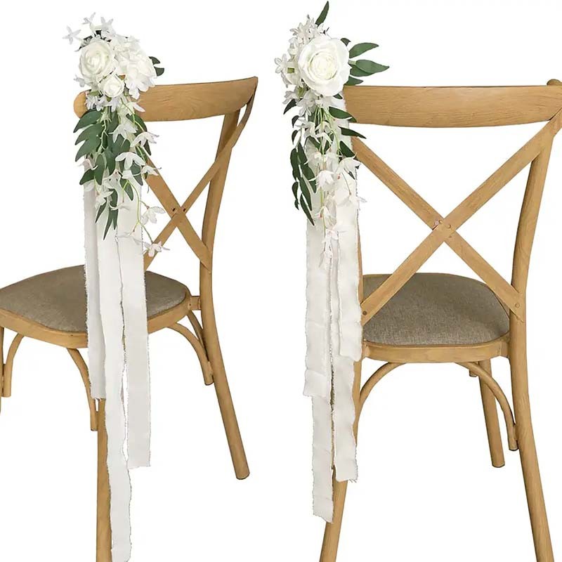 Chair back set hotel bow wedding decoration meeting Hotel chair flower banquet Balinese gauze