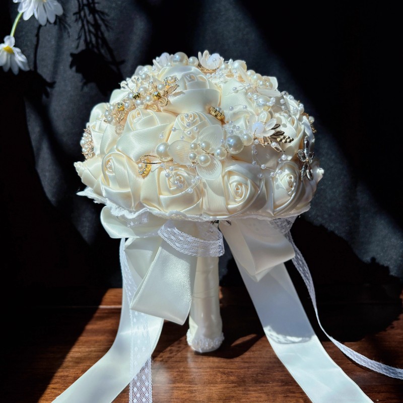 Artificial bridal flower bouquet Silk Roses Flowers Crystal Pearl diamond Wedding hand bride Bouquet supplies