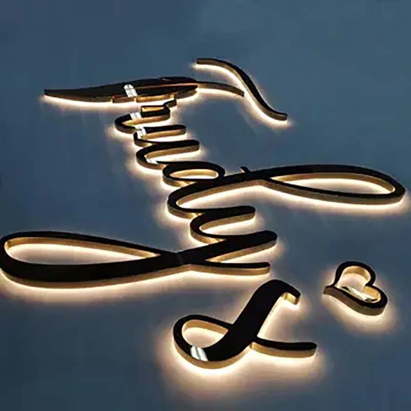 3D Side hollowing wall letters backlit metal letters signage for shop store company signs