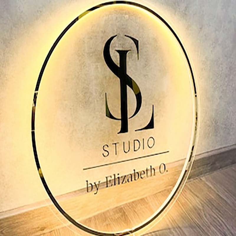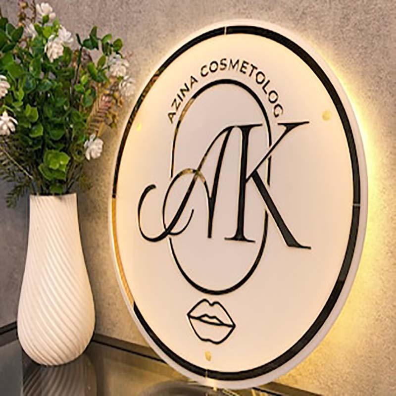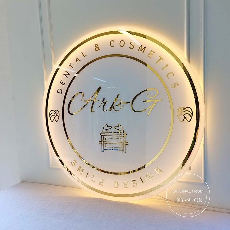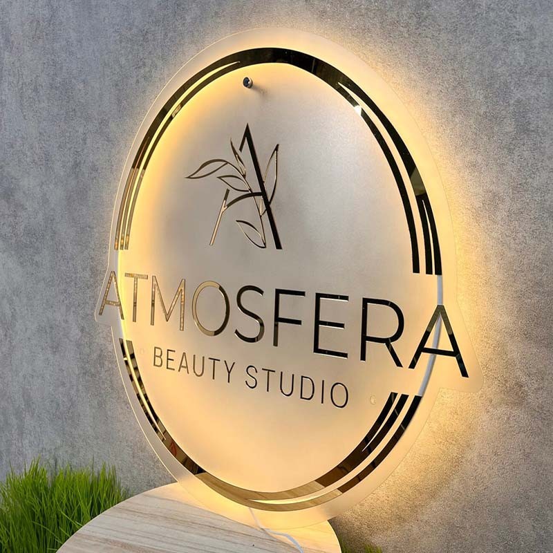 Acrylic logo with LED bakclit sign golden mirror letters, business signs for beauty salon,wall logo sign