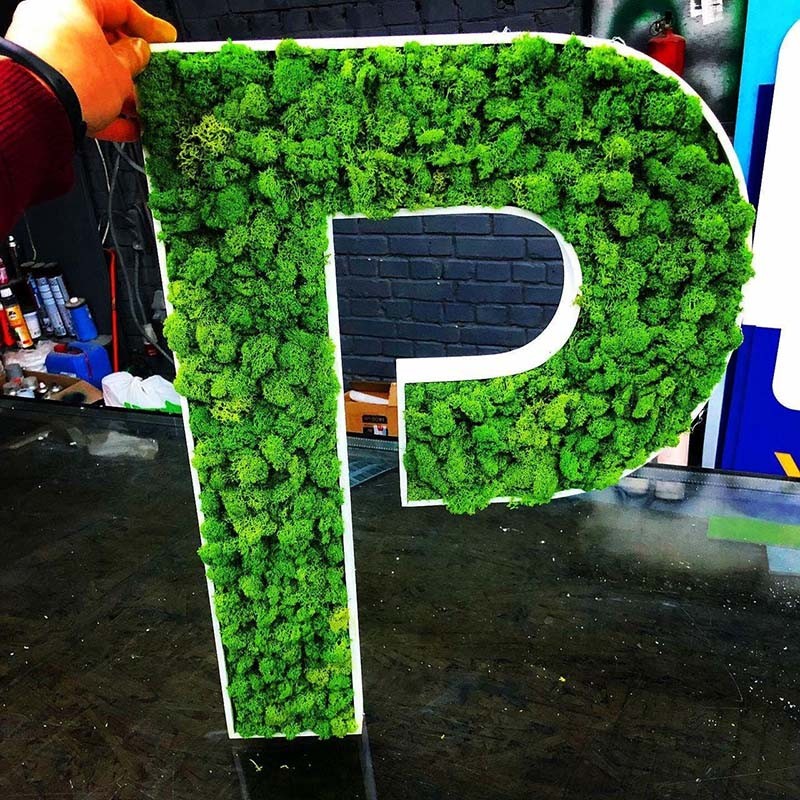 Manufacturer Custom Moss Sign Letters Company 3D Artificial Grass Moss Logo Wall Signage