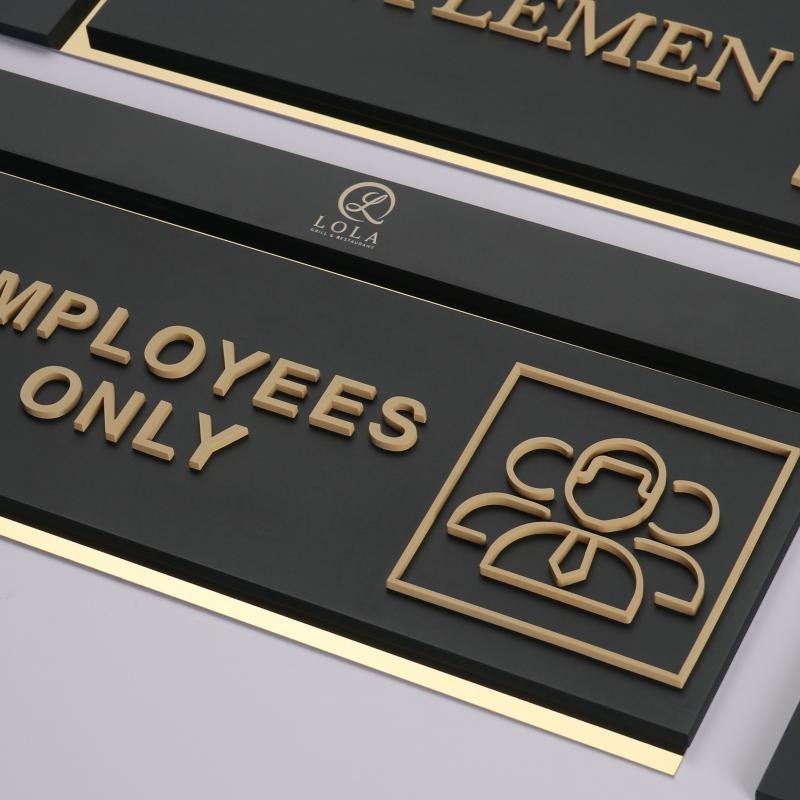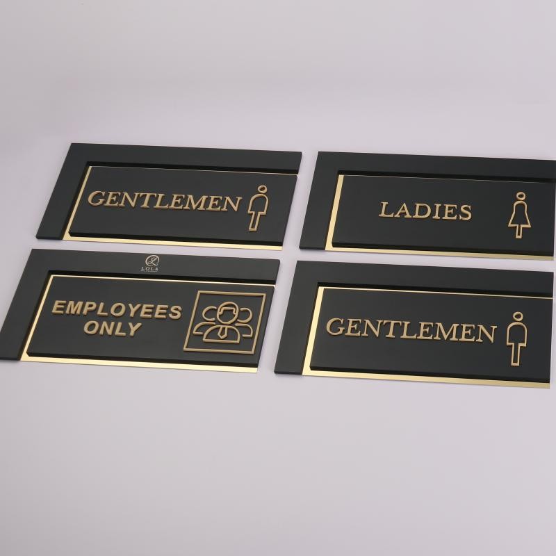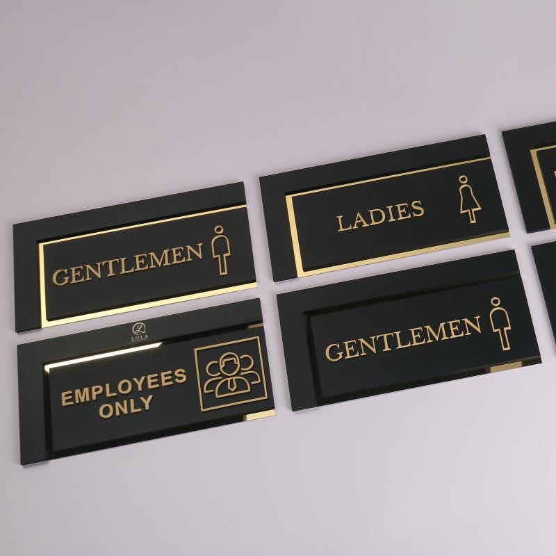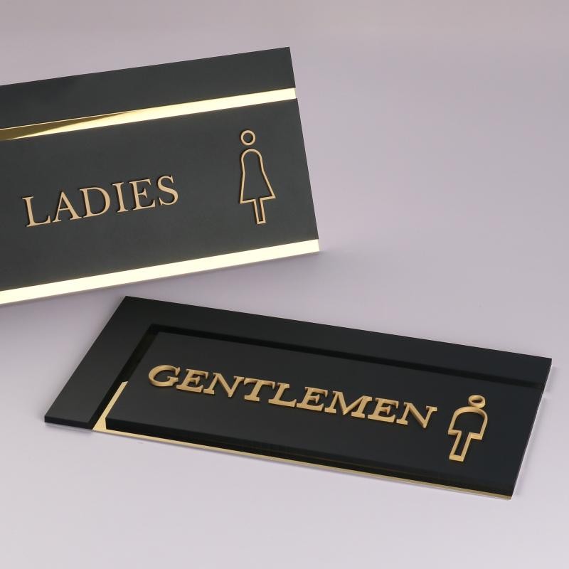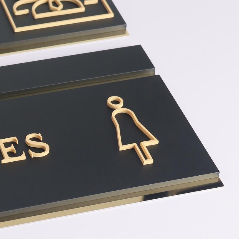 I recently ordered these custom restroom signs for our office, and I couldn’t be more pleased! The design is elegant and modern, with a sleek black background and gold accents that give it a professional and classy appearance. The lettering is clear and easy to read, and the icons are simple yet effective for quick identification. What really stood out to me was the quality of the materials — sturdy and well-made, with a polished finish that looks expensive. Installation was straightforward, and they immediately elevated the look of our restroom entrances. Highly recommended for anyone looking for stylish and functional signage for their business or public space. Excellent craftsmanship and attention to detail!