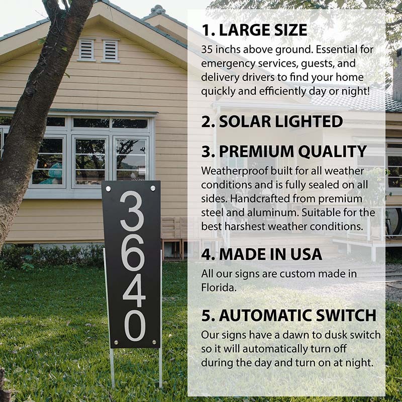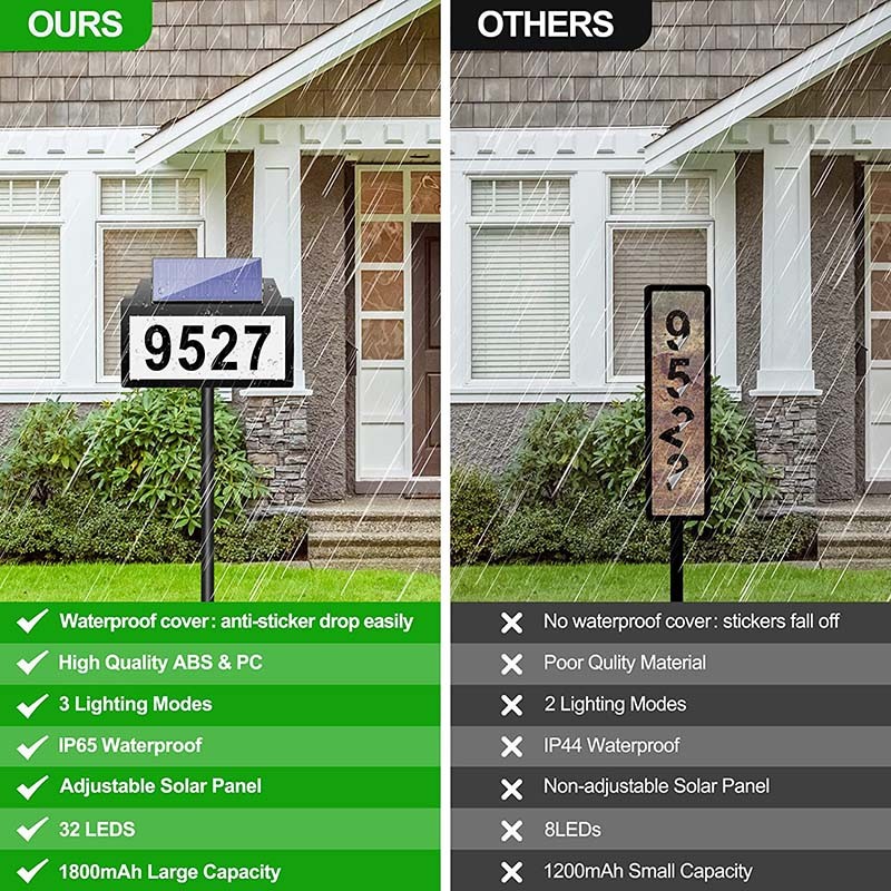LED Solar Address Sign House Number Illuminated Solar Address Plaque Street Outside Garden Driveway Solar Door Number with Light