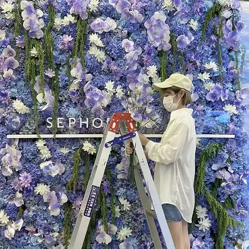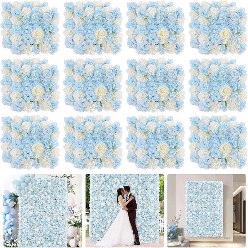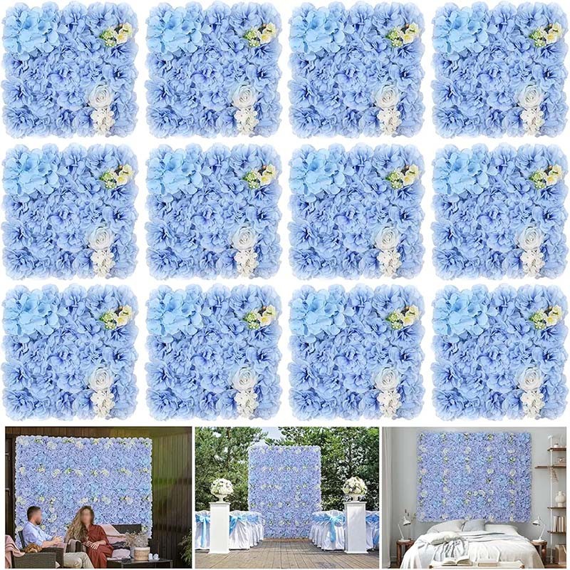 Artificial Floral Panels Wall -12 Pcs Purple Silk Wedding Flower Roses Event Backdrop for Indoor Outdoor Decoration Mother's Day Birthdays Party Home Decor 15x15inch
