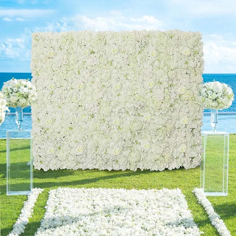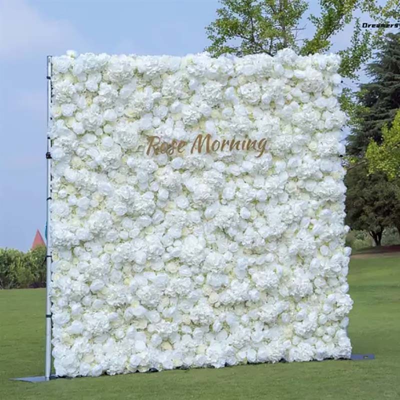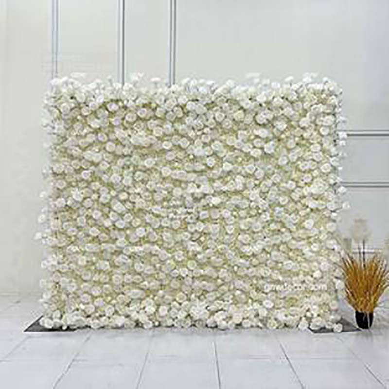 3D Rose Flower Wall Panel Wedding Decoration 8X8 Floral Wall Backdrop flower vase backdrop Roll up White Silk Roses Flower Wall