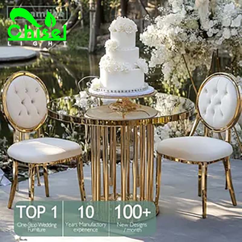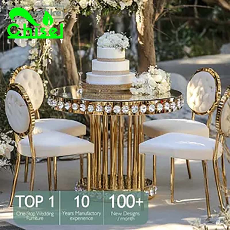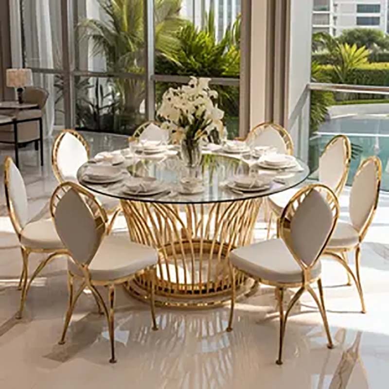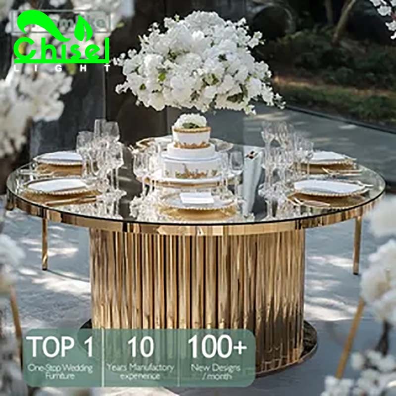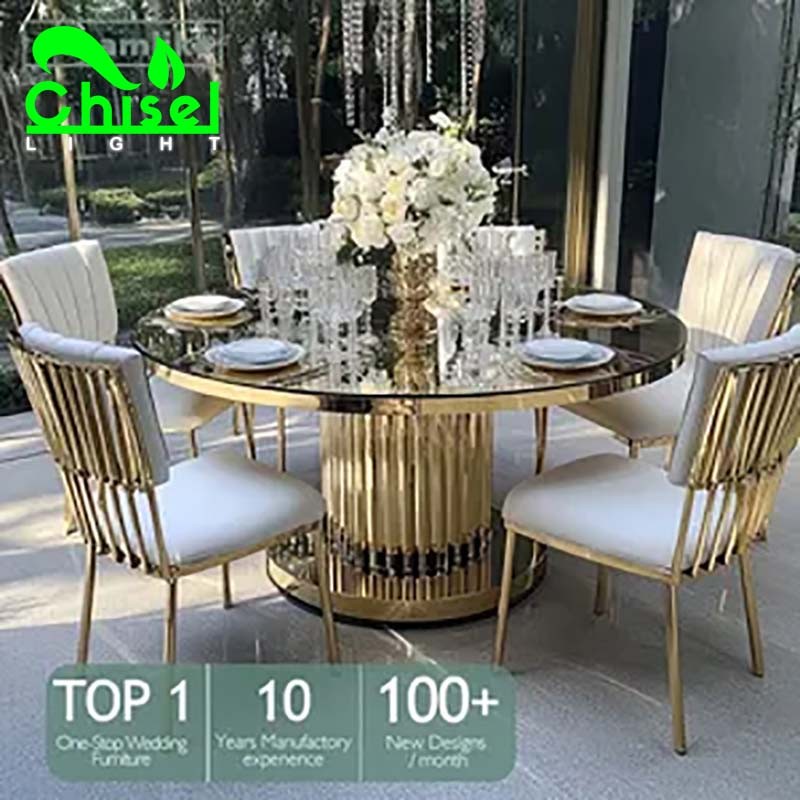 Modern Gold Stainless Steel Banquet Table Rectangular Lux Glass Dining Furniture for Weddings Parties Hotels