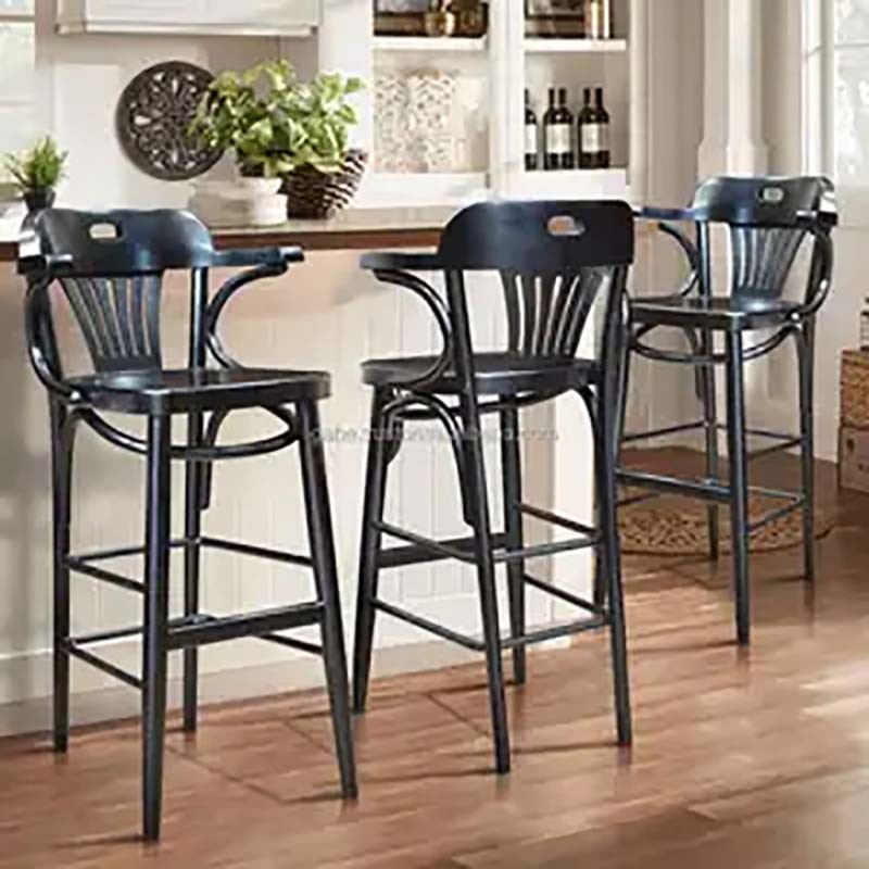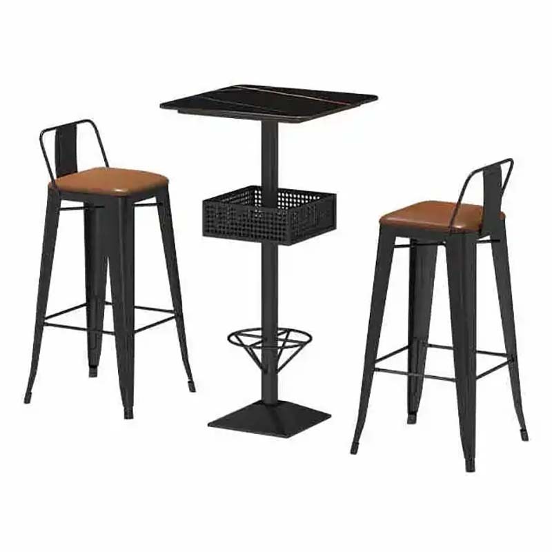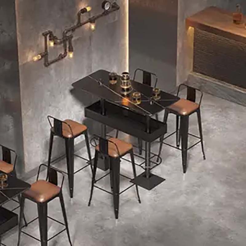Wholesale Classical Industrial Style Restaurant Bar Furniture Wooden Desk Top Dining Table And Black Metal Chair Sets