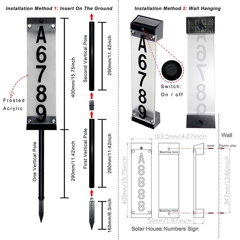 Outdoor Number Light Solar for Houses Mailbox, Patio Wall-Mounted or Floor-Plugged Address Plaques Signs Lighted Stake Light