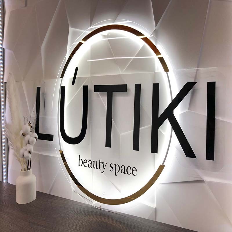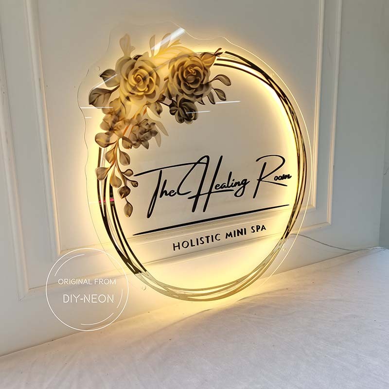 Acrylic logo with LED bakclit sign golden mirror letters, business signs for beauty salon,wall logo sign