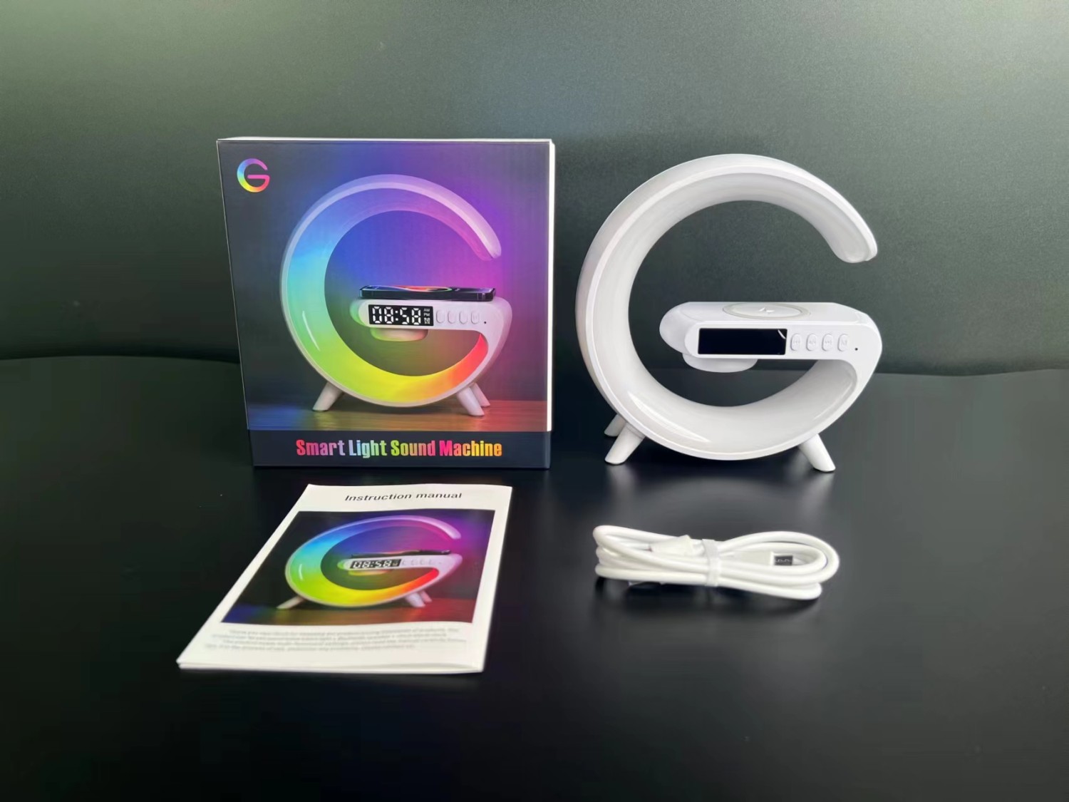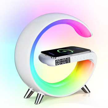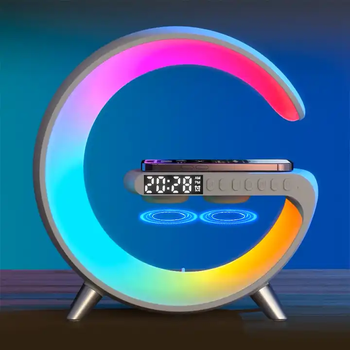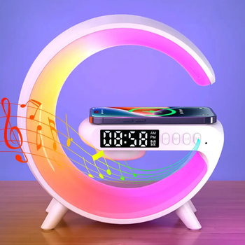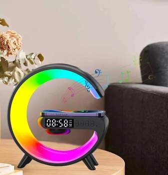 New Wireless Fast Charger with Blue Tooth Speaker Smart Alarm Clocks Sound Light Desk Table Lamp Gift Night for Dorm Kids Adults