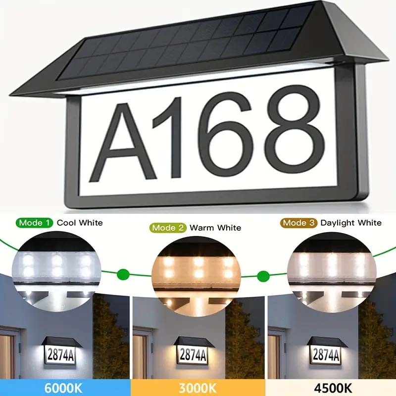 Lighted House Numbers for Outside Waterproof Solar House Number Light with 3 Lighting Modes Super Bright Address Sign