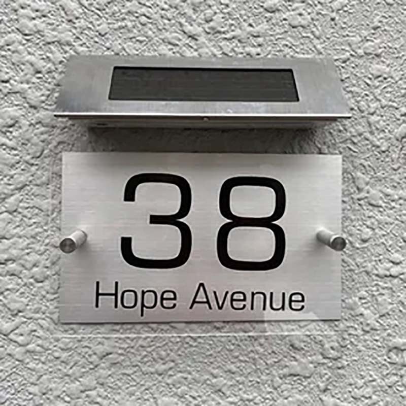 LED Solar Address Sign House Number Illuminated Solar Address Plaque Street Outside Garden Driveway Solar Door Number with Light
