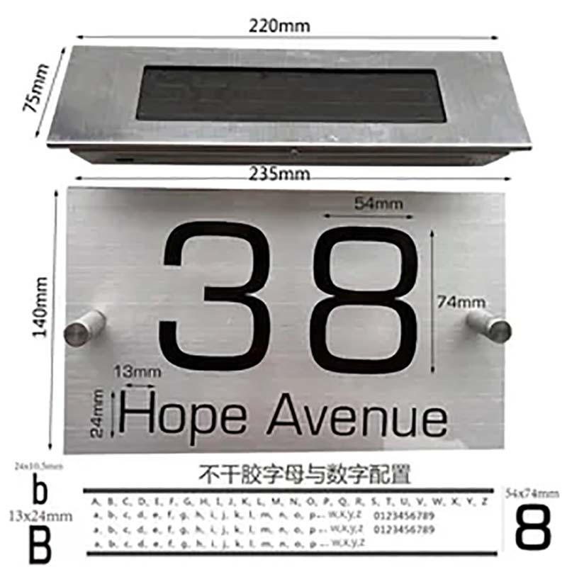 20 LEDs Lighted House Numbers Solar Address Sign Solar garden led light Solar house numbers with solar powered