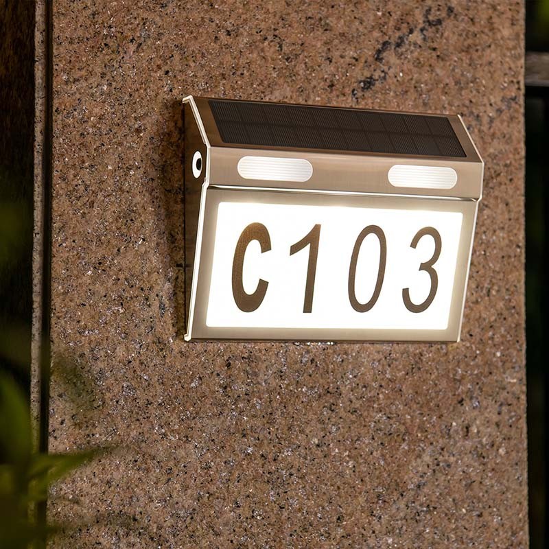 LED Solar Address Sign House Number Illuminated Solar Address Plaque Street Outside Garden Driveway Solar Door Number with Light