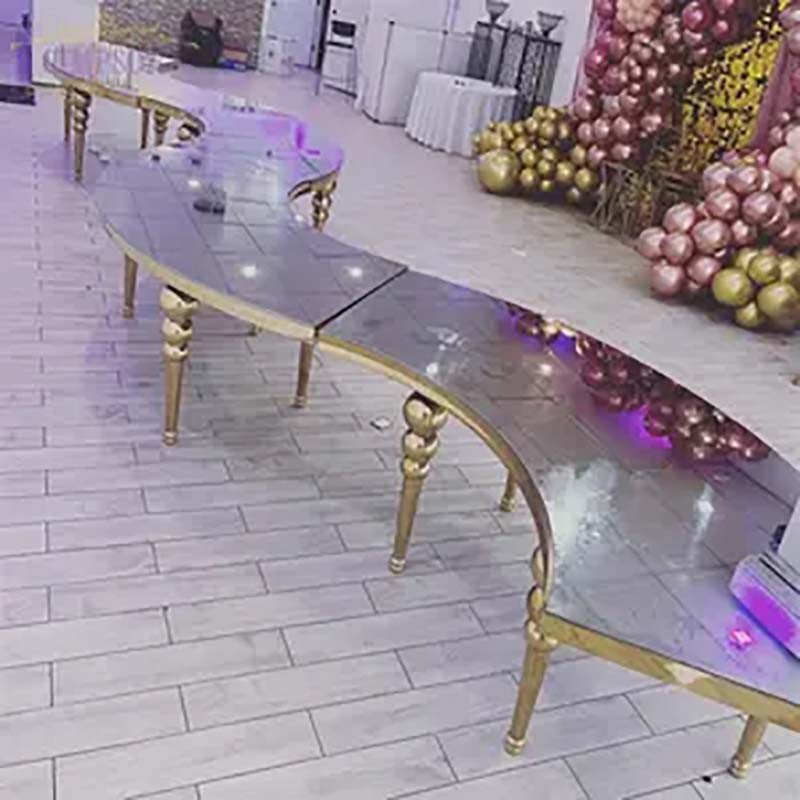 Luxury Stainless Steel Round Banquet Party table Dining Dinner table Glass Serpentine Wedding Cake Table for Event