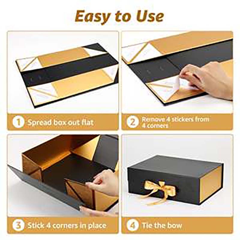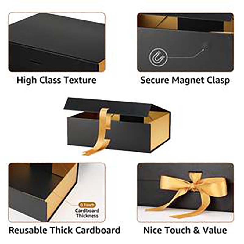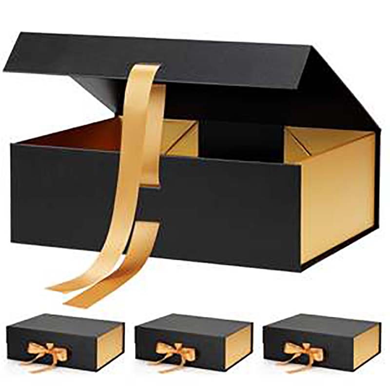 Luxury Magnetic Gift Box Packaging Ribbon Handle Folding Custom Logo Hard Rigid Cardboard Paper Black Gold Boxes Clothing