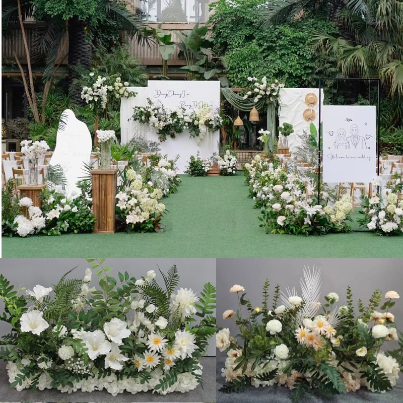 Wedding Flower Runner Silk Flower Row Table Arrangements Greenery Runner