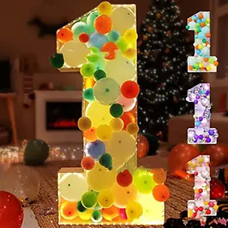 73/100/120CM Number 0 To 9 Letter Balloon Marquee Filling Box Stand DIY Baby Birthday Organic Mosaic Number Decor Balloon Frame