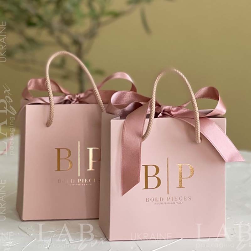 Luxury Jewelry Gift Packaging Pink Paper Bag Custom Gold Logo Kraft Craft Black Reusable Shopping Paper Bag With Ribbon Handles