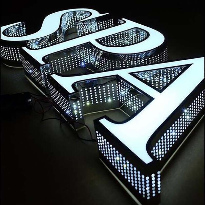 3D Side hollowing wall letters backlit metal letters signage for shop store company signs