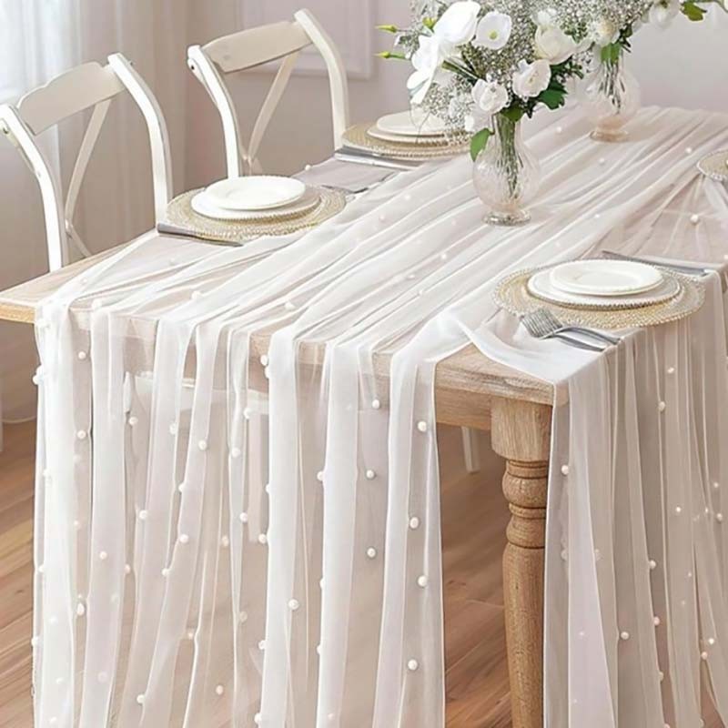 Nice Supplier Ready Made Cheap Table Banner USA Europe Outdoor Window Scarf Voile Curtain Wedding and Home Decoration